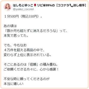今も、あの頃と変わらずココナラ電話相談カテゴリで